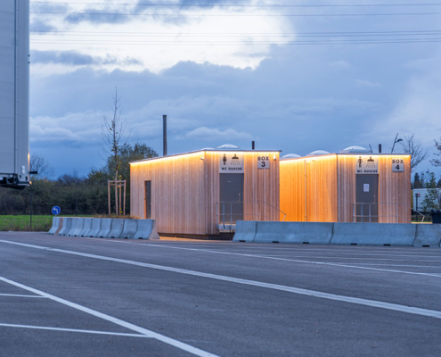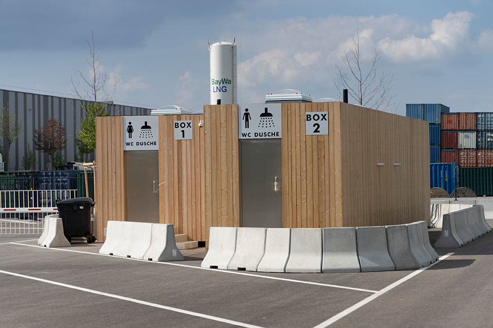 Vor Ort stehen Ihnen moderne Sanitäranlagen mit Duschen, Toiletten, Waschmaschinen und Trockner sowie eine LKW-Waschanlage zur Verfügung – für maximale Erholung und Sauberkeit während Ihrer Pause.